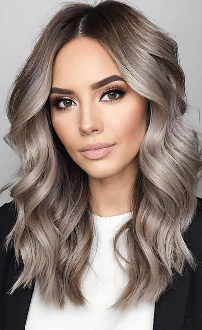 This variation deepens the root shadow significantly, giving us dramatic depth that makes the pale silver ends look even more ethereal. It’s high contrast, yet beautifully blended—a testament to advanced highlighting techniques. If your natural color is deep, this allows you to dip your toes into the icy trend without the commitment of bleaching everything to platinum. The texture here is looser, more lived-in, suggesting a woman who moves with purpose and elegance, unconcerned with fleeting whims.