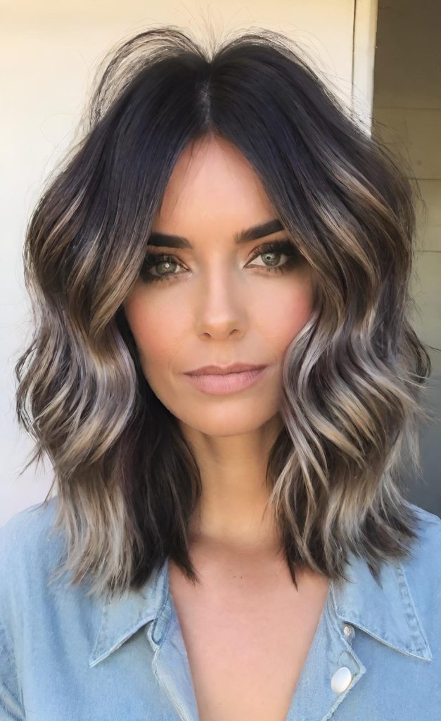 This hairstyle is a perfect example of how a layered cut gains dimension with the right play of colors! The soft waves framing the face and the prominent blonde highlights at the ends bring a fresh and energetic vibe to the style. Shadows hidden between the layers make the hair appear much fuller, while the long bangs offer a mysterious elegance. For those seeking a modern and sophisticated look, this model serves as a true style guide.