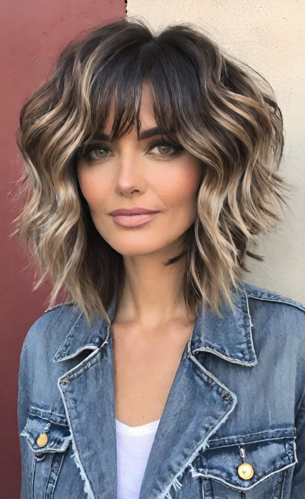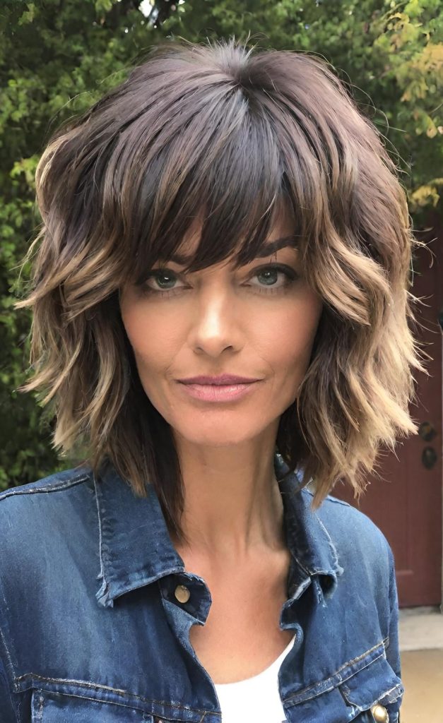 This hairstyle is a true style icon, reflecting the confidence and dynamism of the modern woman! The heavy shag layers paired with prominent bangs add both movement and captivating depth to the hair. The subtle highlights at the ends perfectly balance this messy yet controlled texture. For those looking to add extra dimension and achieve that cool “woke up like this” vibe every single day, this look is an absolute masterpiece!