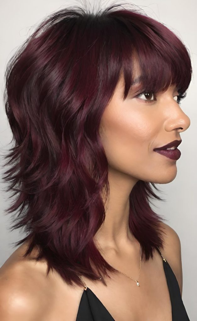 ✨ I’ve gathered floating texture burgundy shag styles that highlight natural lift and soft fringe.