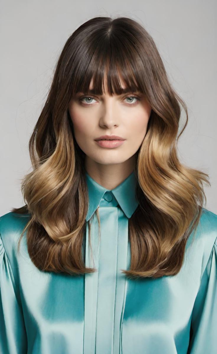 Adding balayage highlights to curtain bangs enhances depth and dimension, creating a naturally sun-kissed effect.