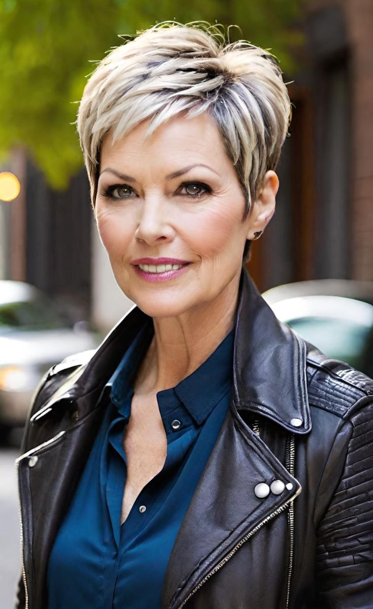 A feathered pixie cut with extra volume on top elongates the face and adds a youthful lift. This cut is ideal for those who want a soft yet stylish look.
