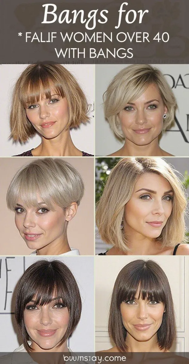 Here are 24 stylish hairstyles for women over 40 with bangs that can flatter different face shapes and personalities: