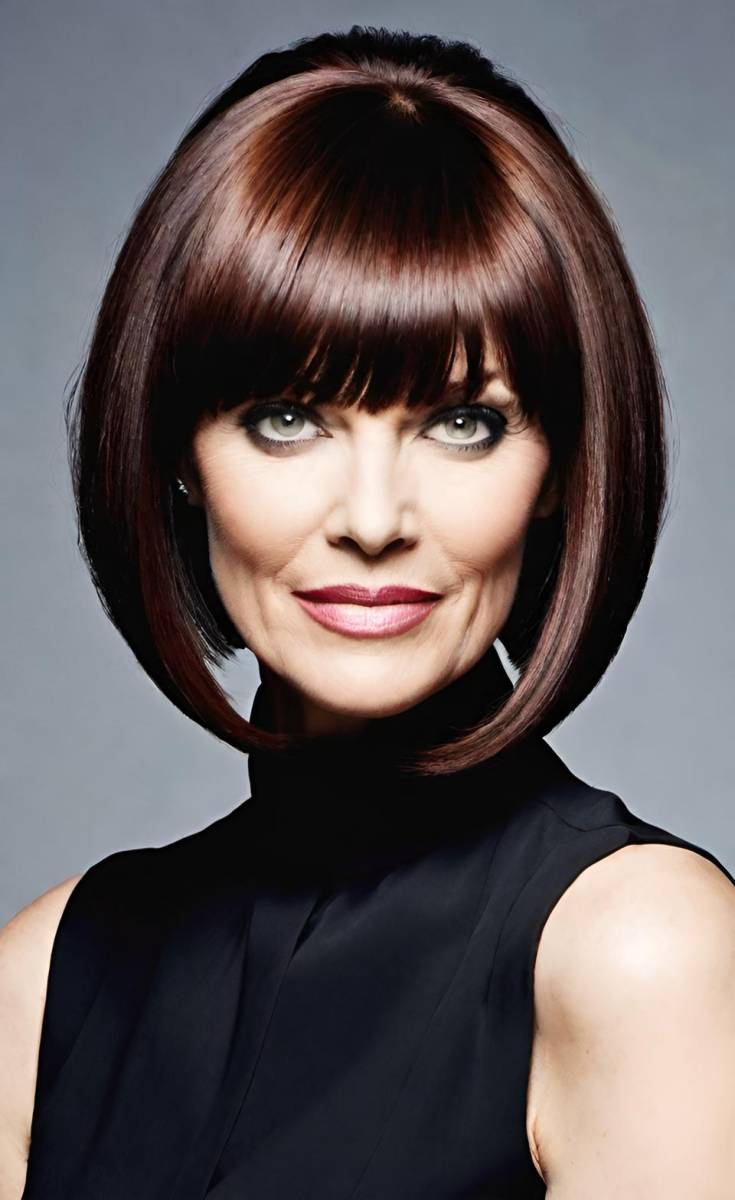 Blunt Bob with Straight-Across Bangs – A blunt bob with straight bangs creates a sharp, structured style.