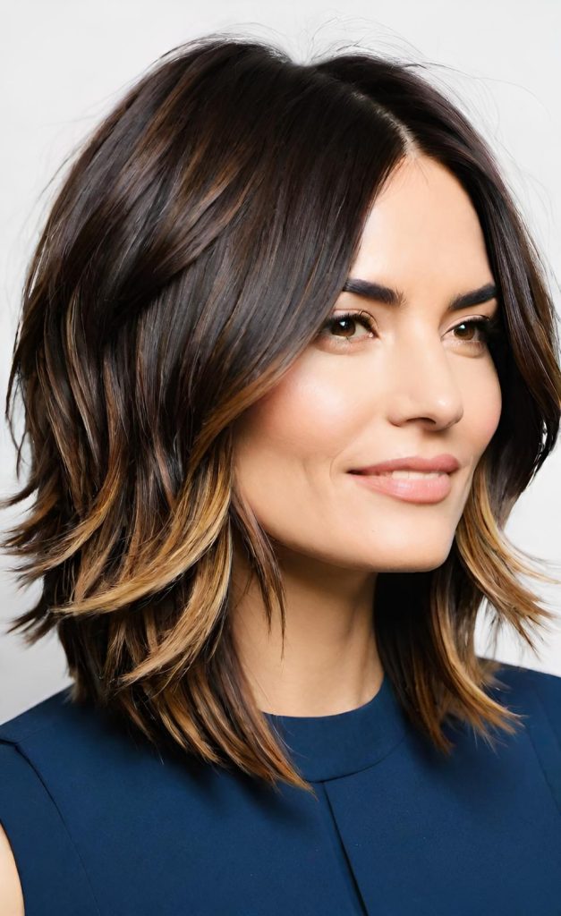 Add a pop of color with bold highlights to make your shoulder-length cut stand out.