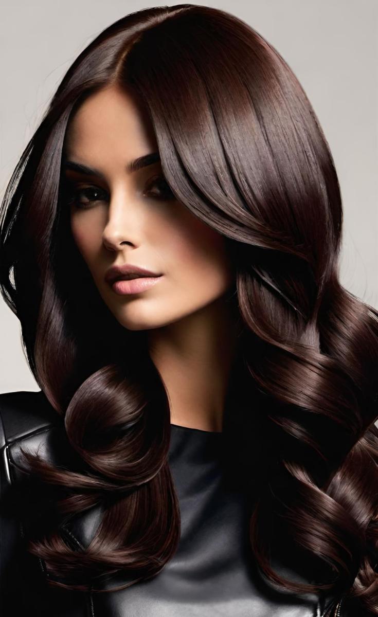 A high-shine, glossy chocolate brown that enhances vibrancy and healthiness.