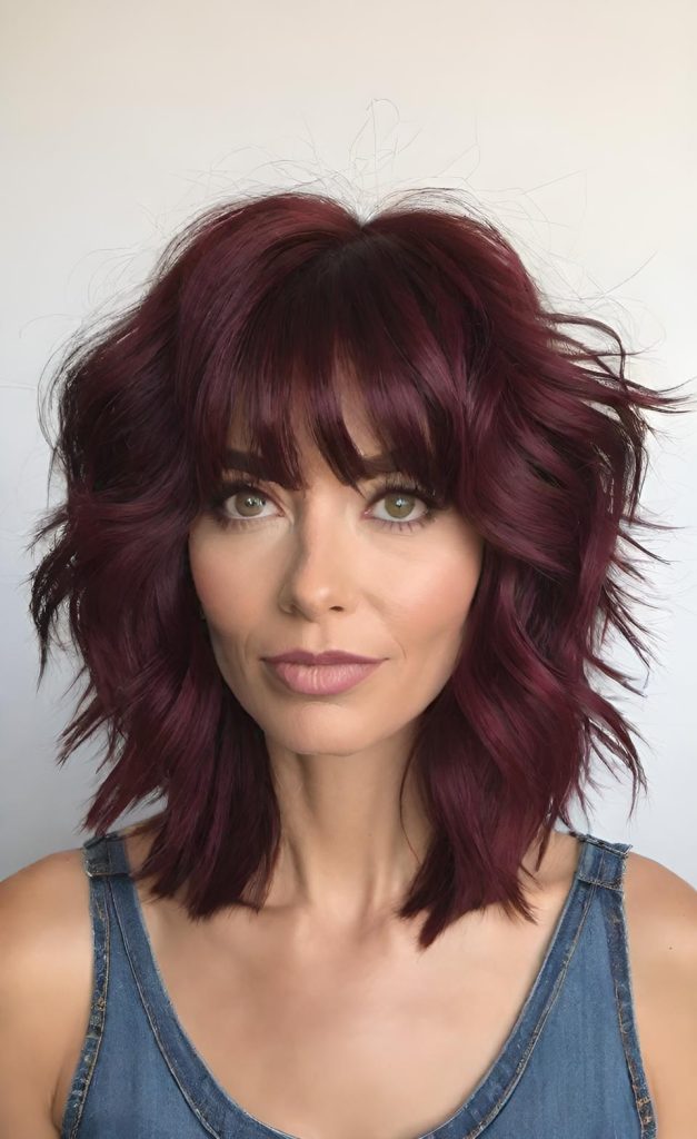 The beauty of the burgundy shag is its versatility: it flatters short bobs, medium shoulder-length cuts, and even long layered styles. Add soft bangs, wispy ends, or voluminous waves, and you have a look that radiates modern confidence with just the right touch of mystery. Whether you lean toward a deep plum red, a bright cherry burgundy, or a dark wine shade, this color-cut combo has the power to completely transform your vibe.
