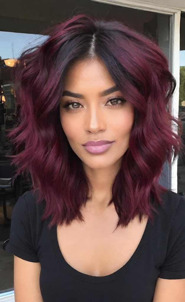 24-Unleash Your Inner Vixen: Effortless Wavy Wine Hues!