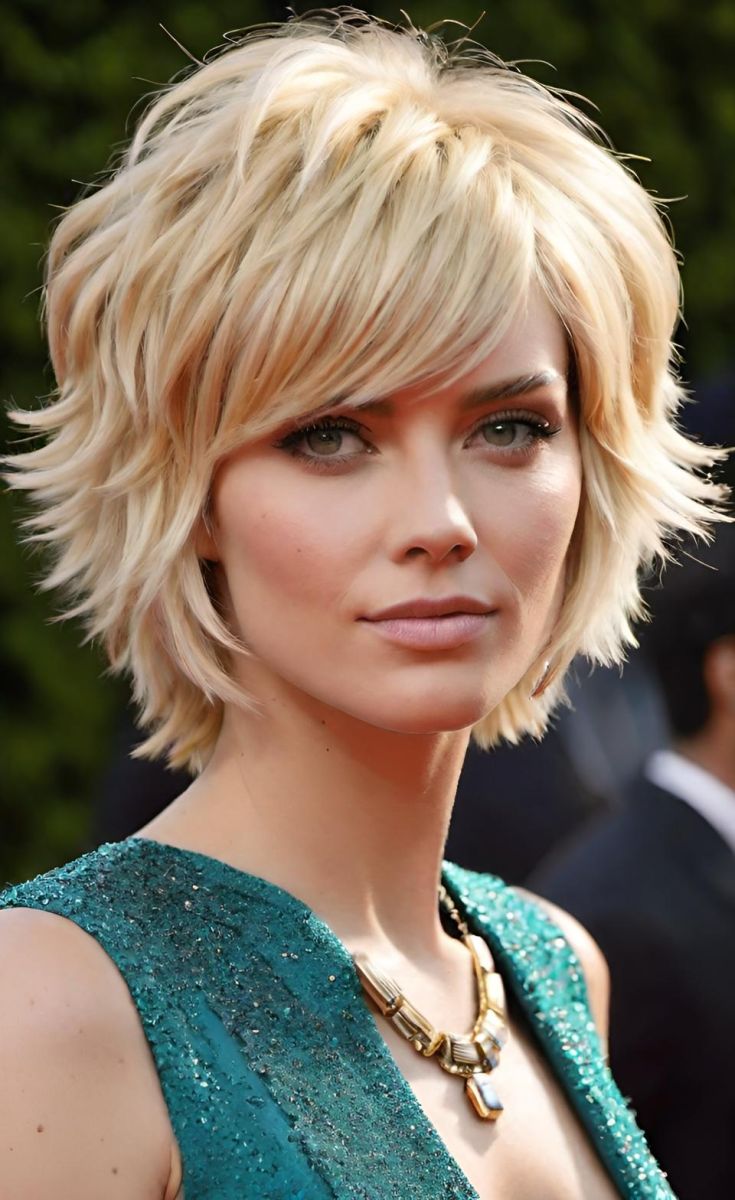 Short shaggy cuts are ideal for fine blonde hair, as they help add volume and thickness. The layered texture lifts the hair and gives it the appearance of fullness. Pair with light blonde or platinum shades for a sleek, modern finish.