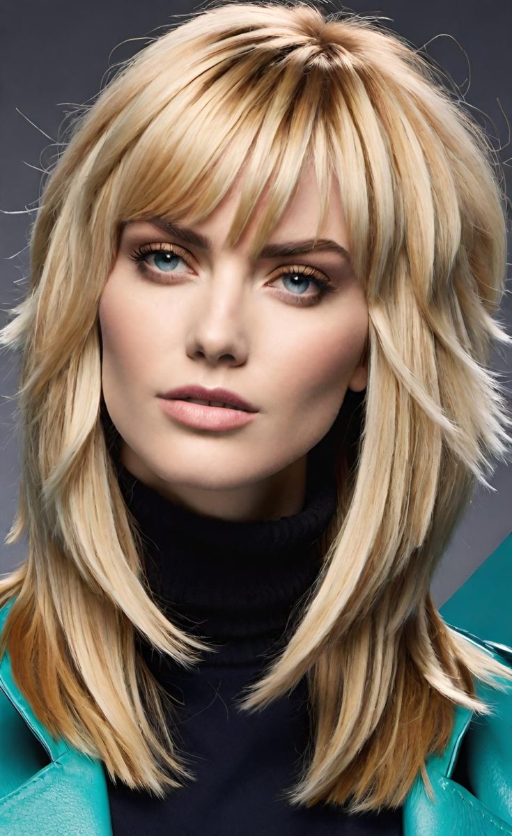 A V-shaped shaggy cut is flattering for blondes who want to add shape and texture to their hair. The layers are cut in a V shape, creating a sharp and defined look. This works well for both straight and slightly wavy blonde hair.