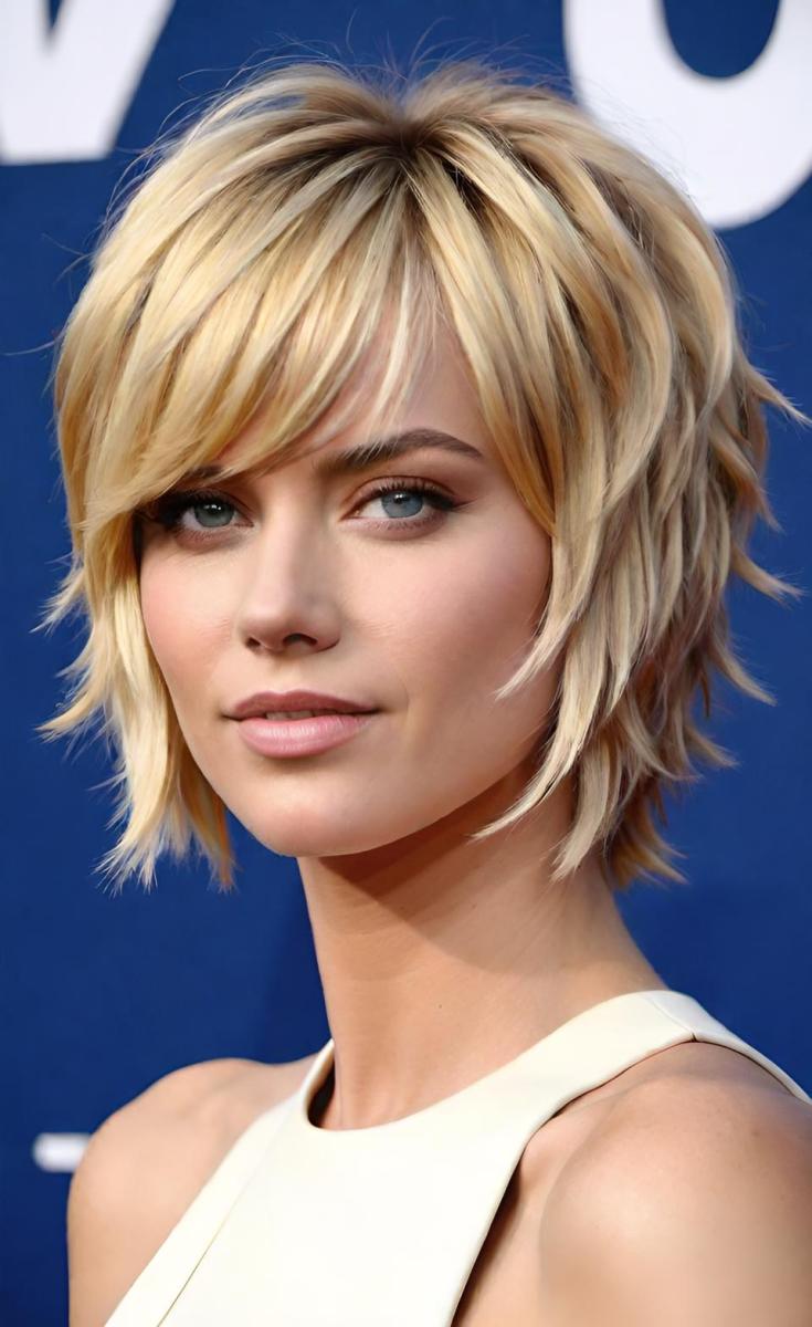 Short shaggy cuts are ideal for fine blonde hair, as they help add volume and thickness. The layered texture lifts the hair and gives it the appearance of fullness. Pair with light blonde or platinum shades for a sleek, modern finish.