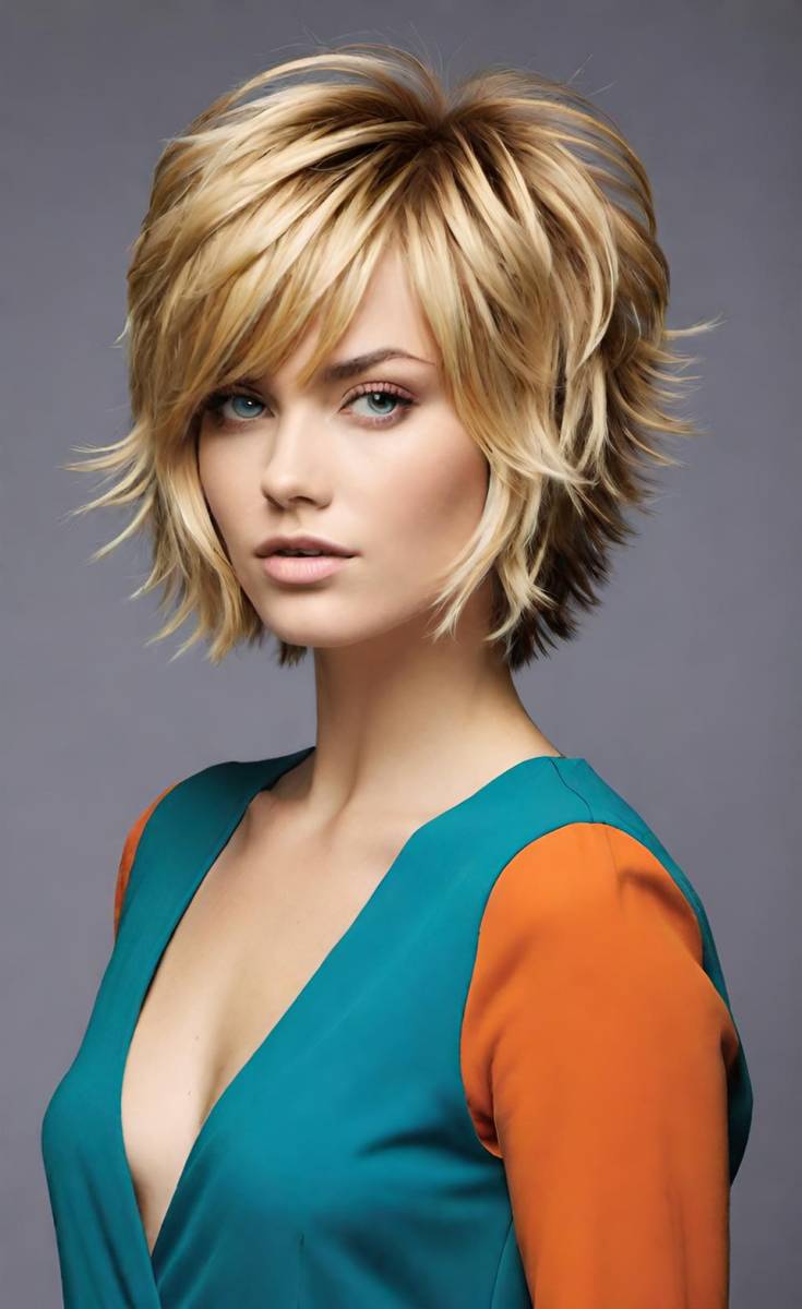 Short shaggy cuts are ideal for fine blonde hair, as they help add volume and thickness. The layered texture lifts the hair and gives it the appearance of fullness. Pair with light blonde or platinum shades for a sleek, modern finish.