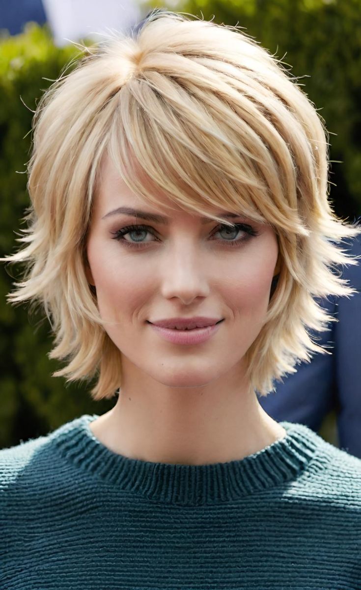 Short shaggy cuts are ideal for fine blonde hair, as they help add volume and thickness. The layered texture lifts the hair and gives it the appearance of fullness. Pair with light blonde or platinum shades for a sleek, modern finish.