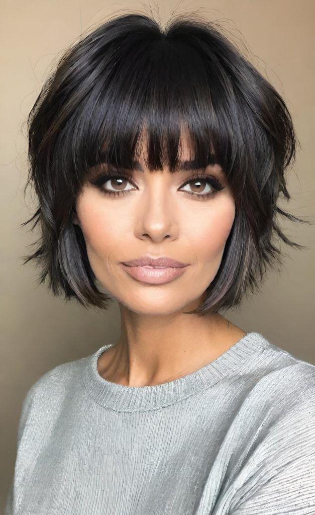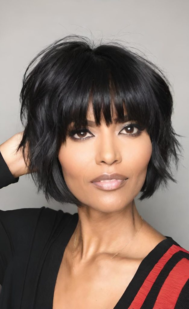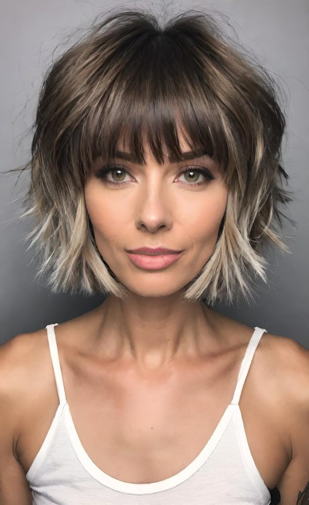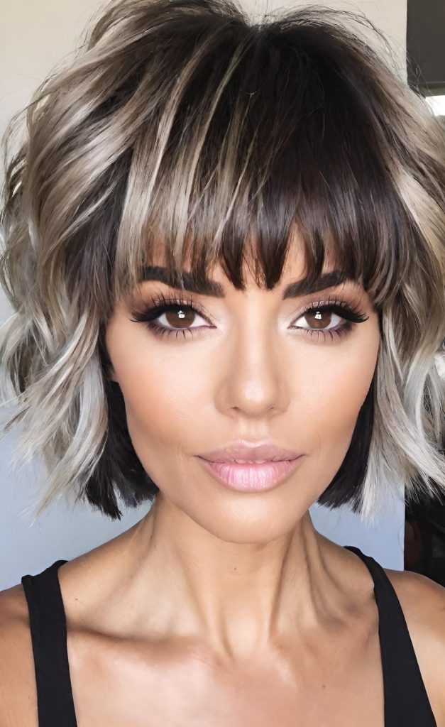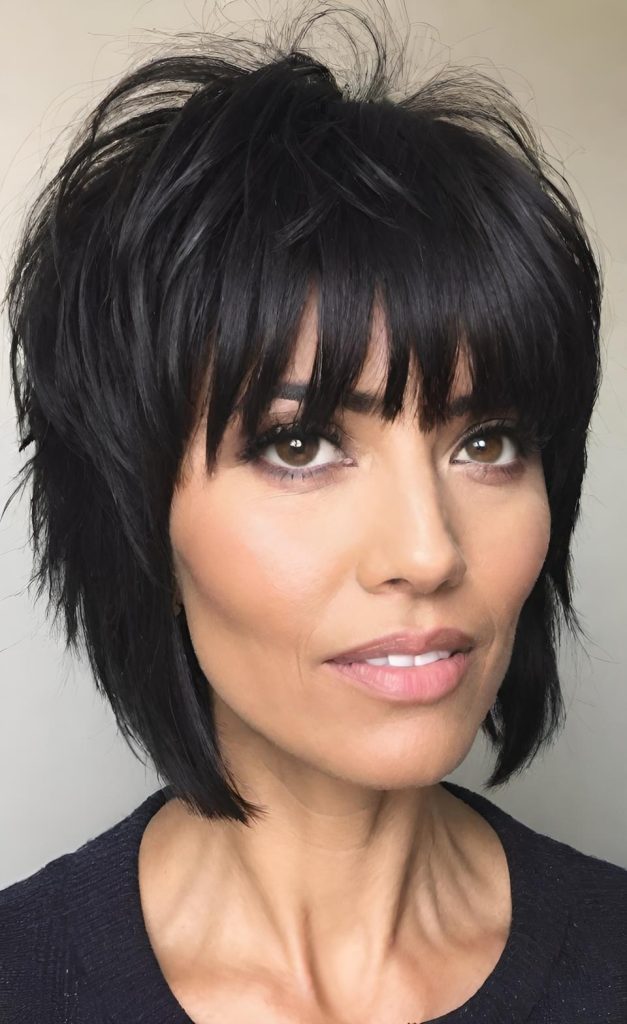 The luxe short shag cut brings together sophistication and ease. With its volumizing texture and wispy bangs, this style feels elevated yet completely wearable.
