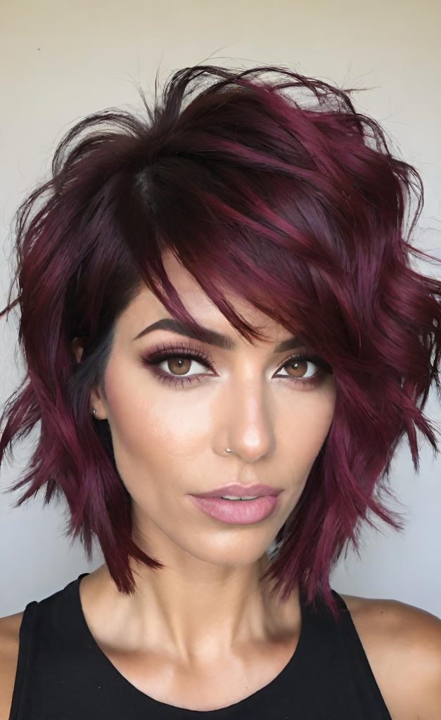 If you’re searching for a hairstyle that’s light, expressive, and effortlessly chic, the Messy Burgundy Shag could be your next go-to. It’s wearable, bold without trying too hard, and full of personality.